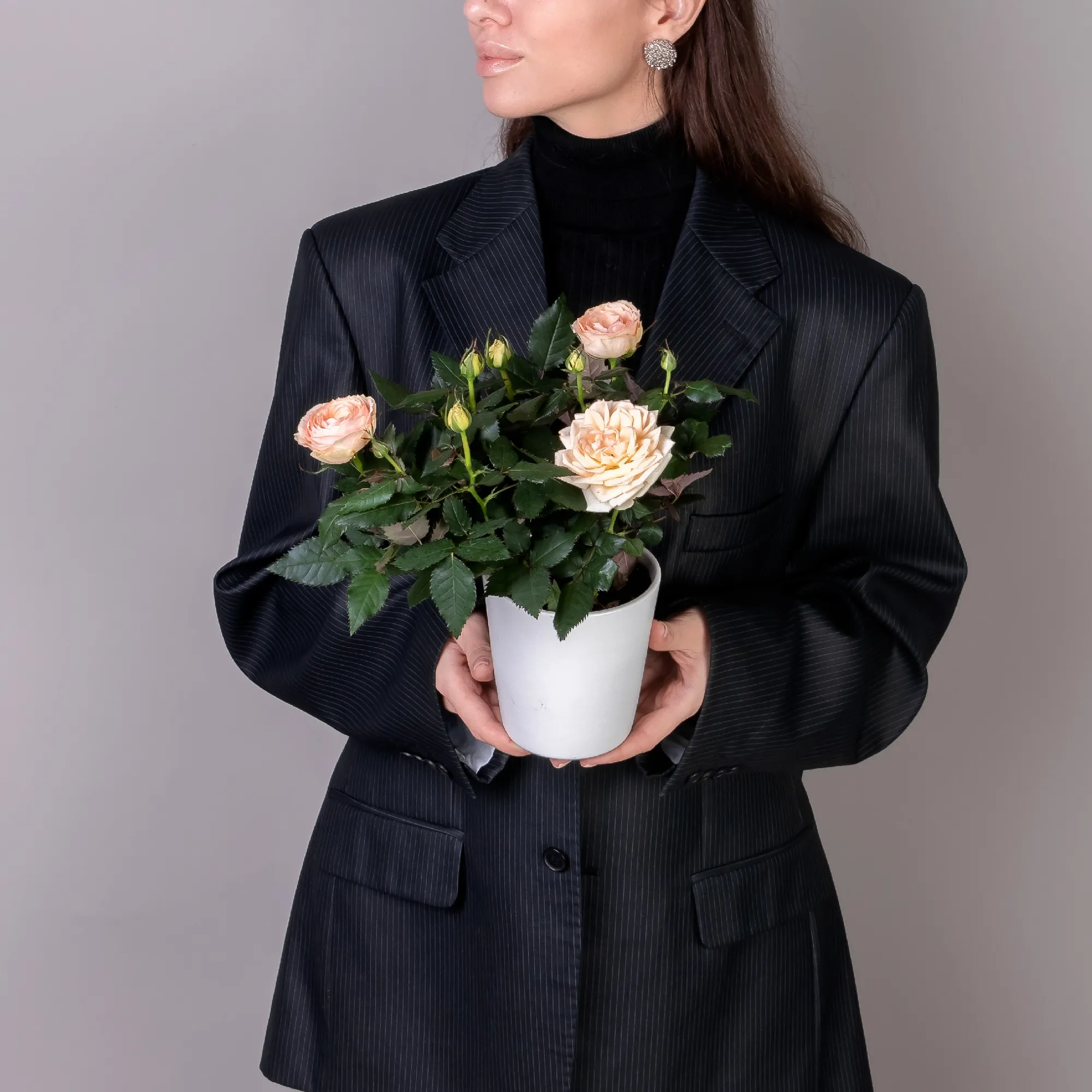 Как правило, растения доставляются в техническом пластиковом горшке от поставщика. Если в наименовании указано «в керамике/цинке», то в эту стоимость входит декоративное кашпо.