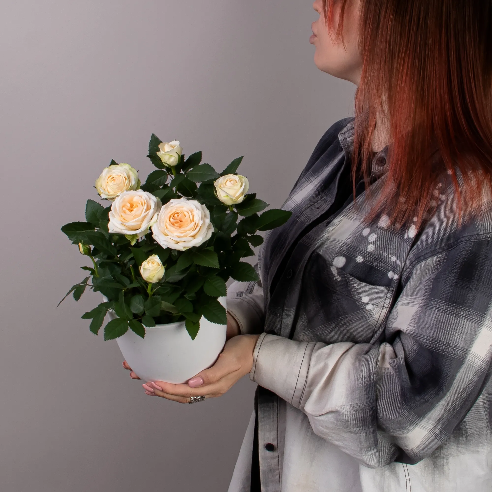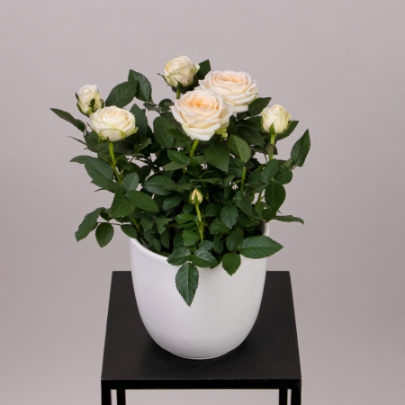 Как правило, растения доставляются в техническом пластиковом горшке от поставщика. Если в наименовании указано «в керамике/цинке», то в эту стоимость входит декоративное кашпо.