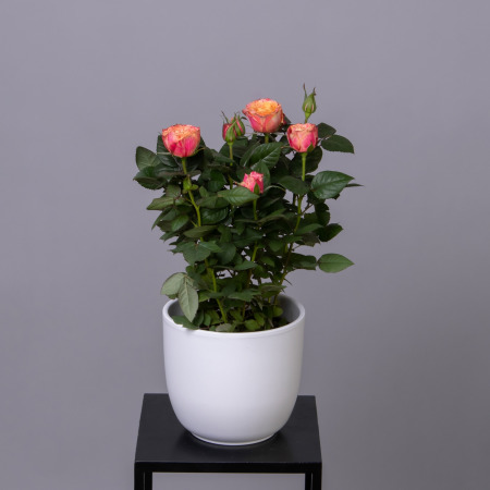 Как правило, растения доставляются в техническом пластиковом горшке от поставщика. Если в наименовании указано «в керамике/цинке», то в эту стоимость входит декоративное кашпо.