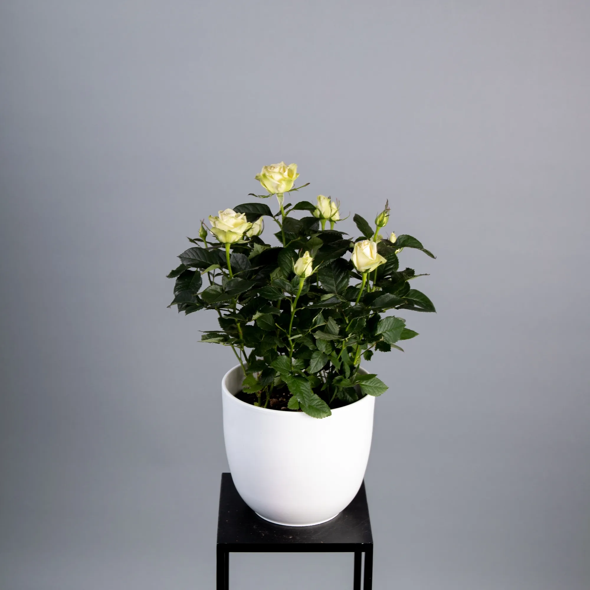 Как правило, растения доставляются в техническом пластиковом горшке от поставщика. Если в наименовании указано «в керамике/цинке», то в эту стоимость входит декоративное кашпо.