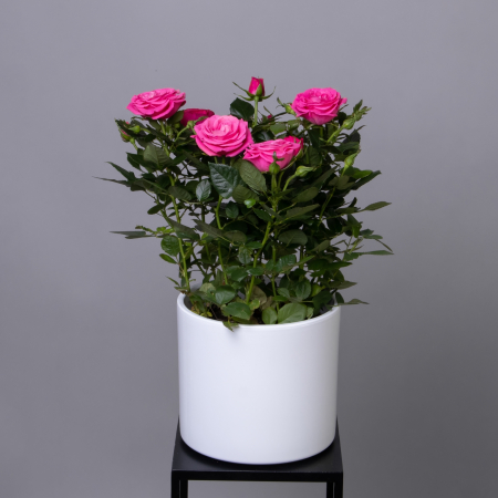 Как правило, растения доставляются в техническом пластиковом горшке от поставщика. Если в наименовании указано «в керамике/цинке», то в эту стоимость входит декоративное кашпо.