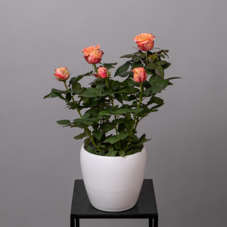 Как правило, растения доставляются в техническом пластиковом горшке от поставщика. Если в наименовании указано «в керамике/цинке», то в эту стоимость входит декоративное кашпо.