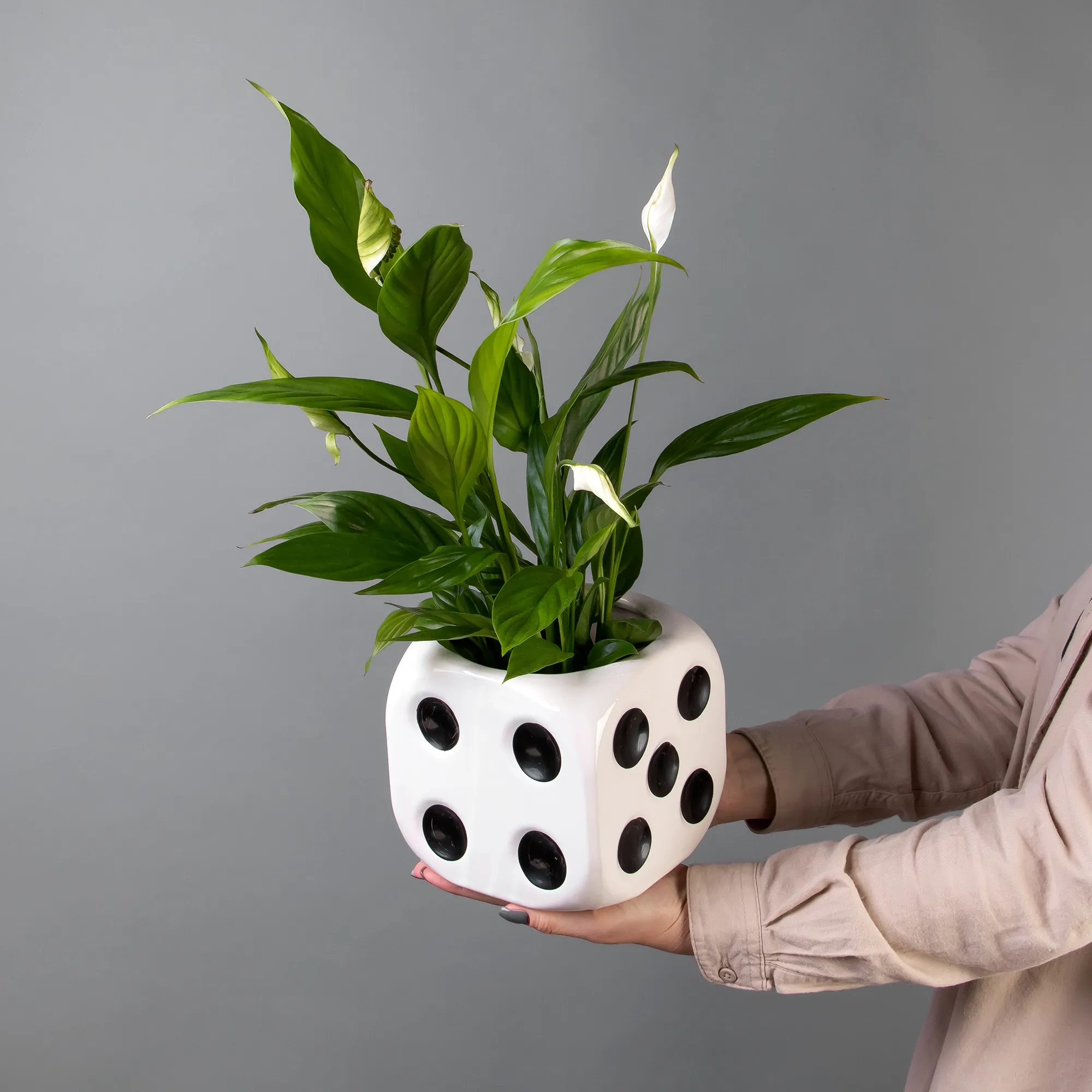 Как правило, растения доставляются в техническом пластиковом горшке от поставщика. Если в наименовании указано «в керамике/цинке», то в эту стоимость входит декоративное кашпо.