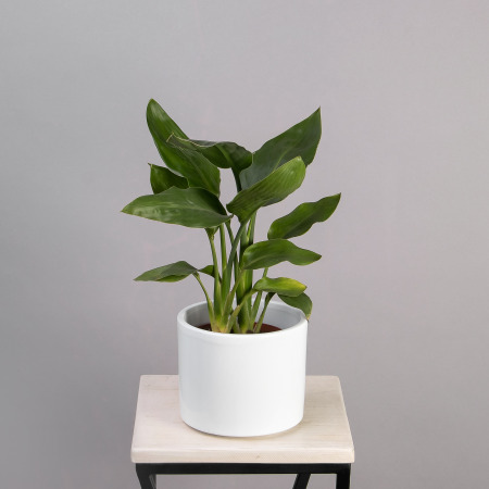 Как правило, растения доставляются в техническом пластиковом горшке от поставщика. Если в наименовании указано «в керамике/цинке», то в эту стоимость входит декоративное кашпо.
