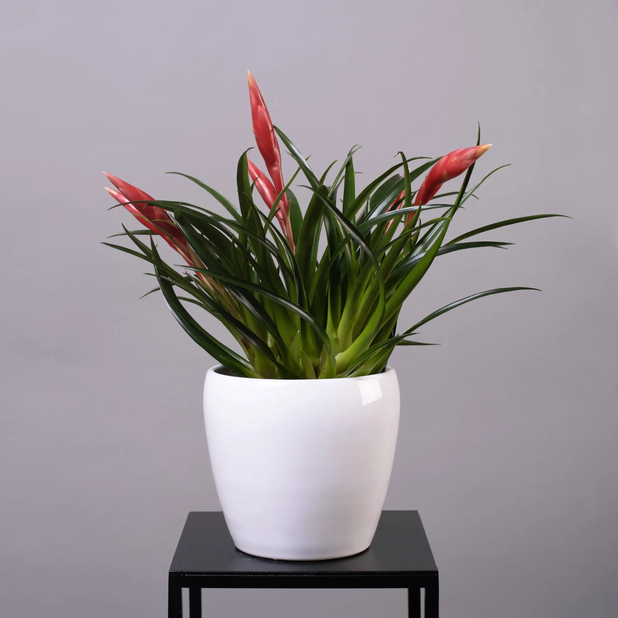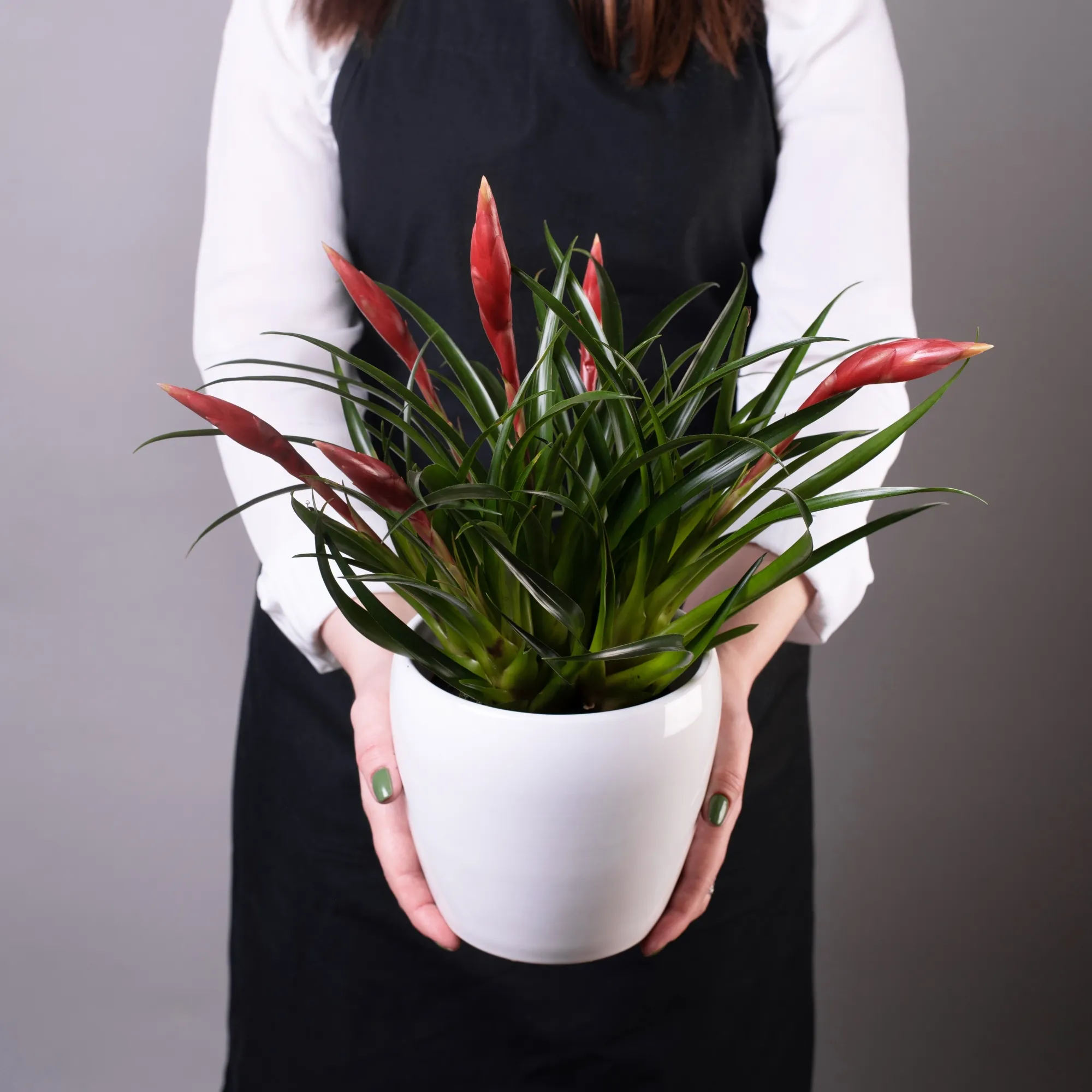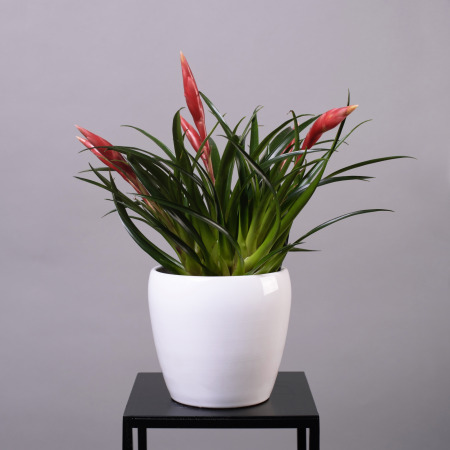 Как правило, растения доставляются в техническом пластиковом горшке от поставщика. Если в наименовании указано «в керамике/цинке», то в эту стоимость входит декоративное кашпо.