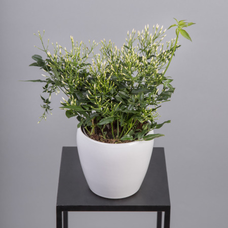 Как правило, растения доставляются в техническом пластиковом горшке от поставщика. Если в наименовании указано «в керамике/цинке», то в эту стоимость входит декоративное кашпо.