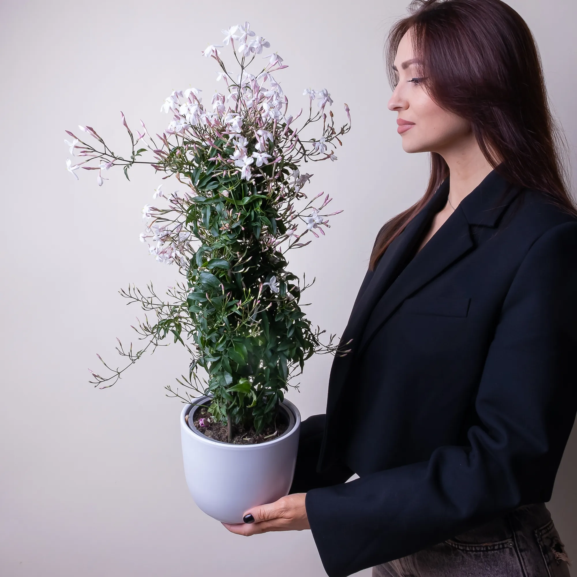 Как правило, растения доставляются в техническом пластиковом горшке от поставщика. Если в наименовании указано «в керамике/цинке», то в эту стоимость входит декоративное кашпо.