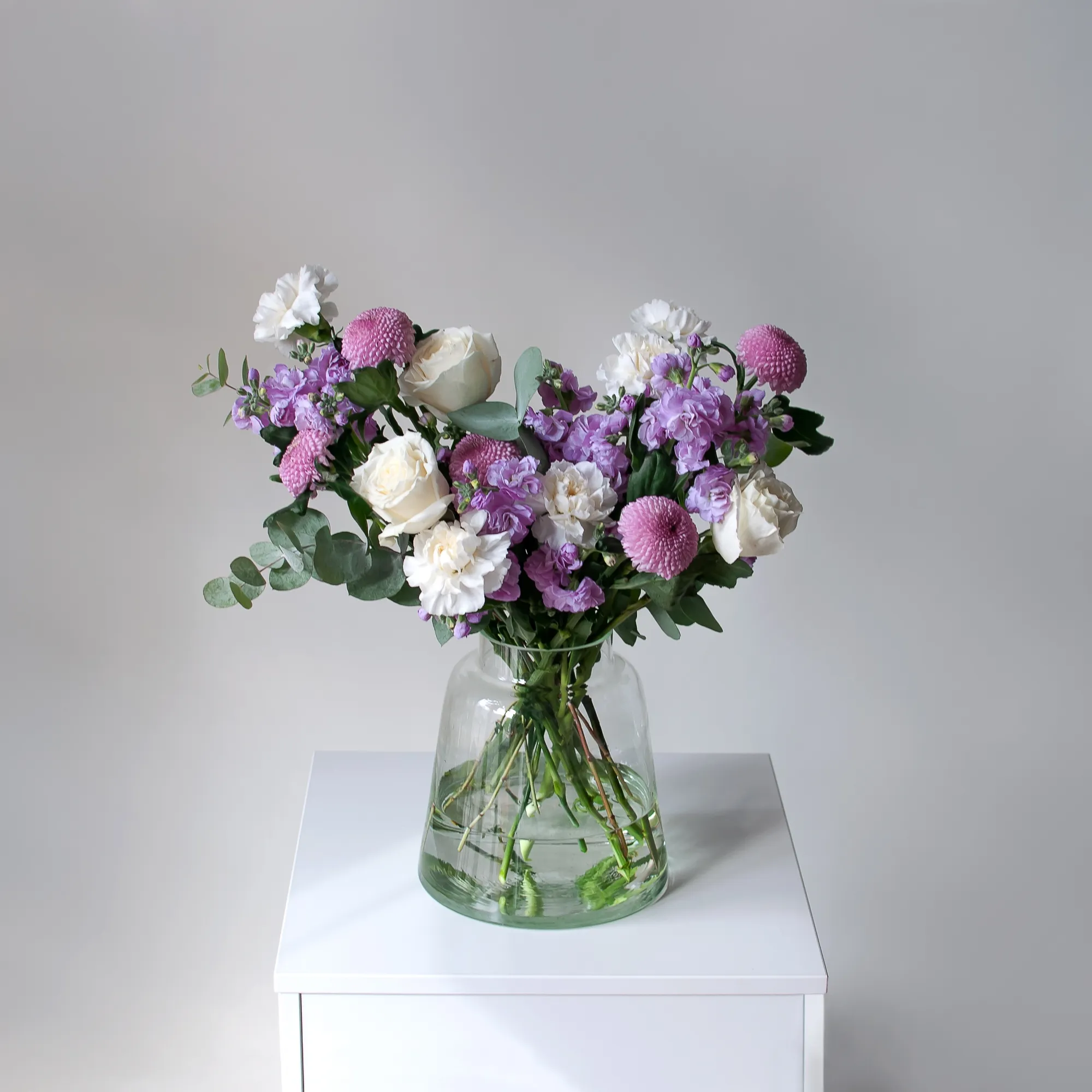 Гвоздика-5, Роза-3, Хризантема-5, Маттиола-4, Листья эвкалипта-3