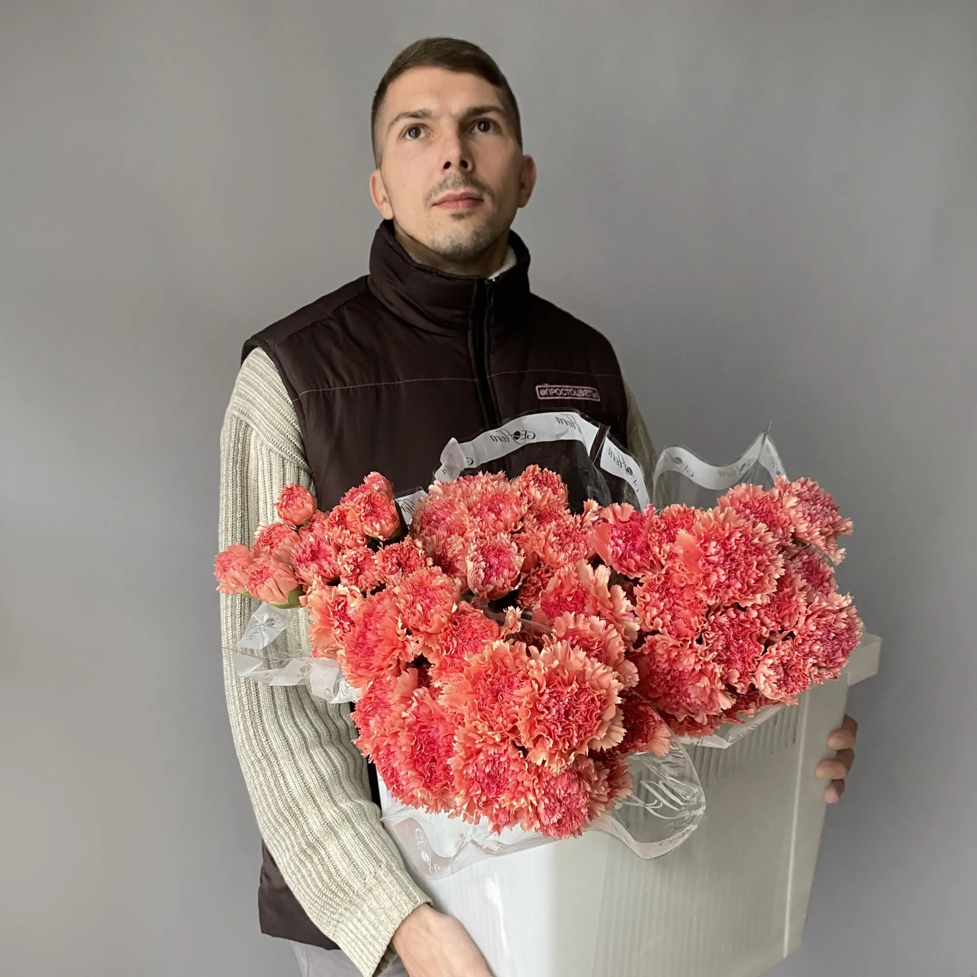 Гвоздика "Прометео" из 25 оранжевых гвоздик высотой 50 см