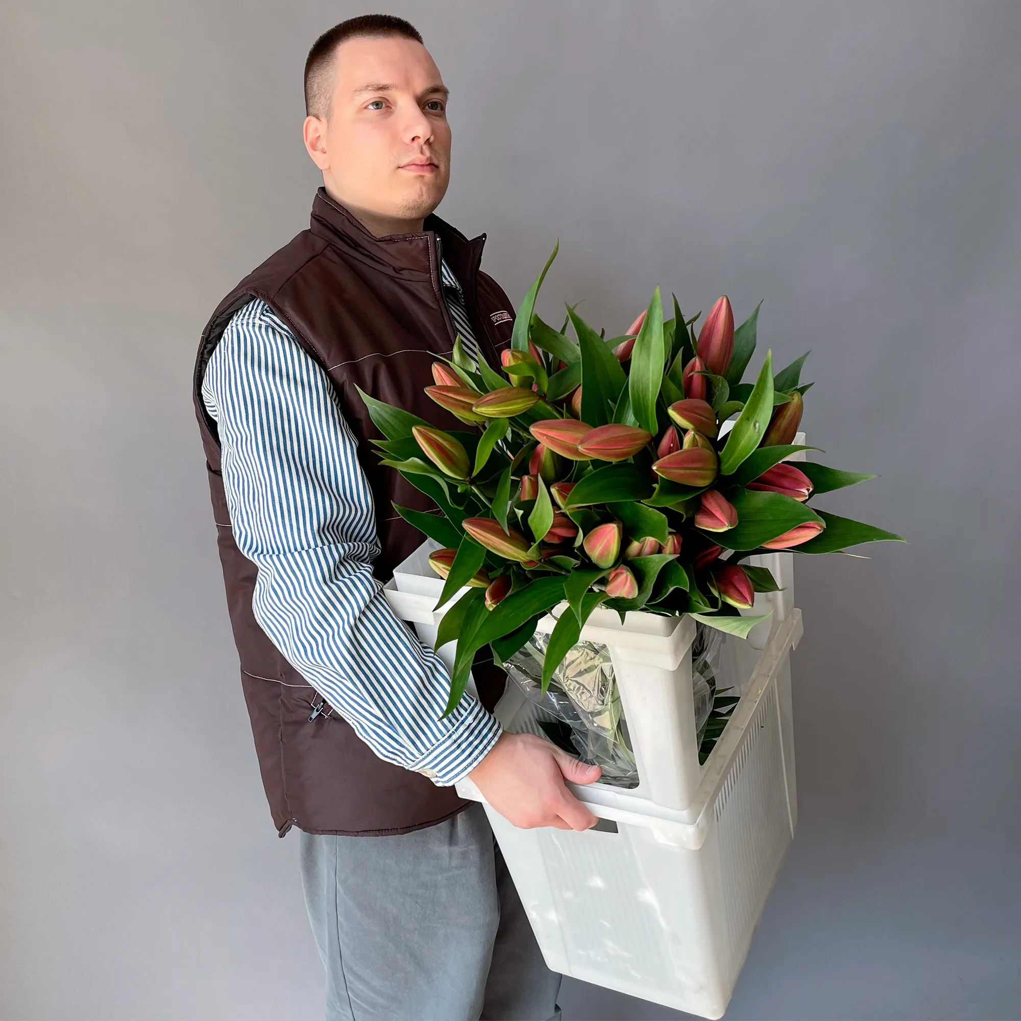 Цветы, приехавшие прямо с плантации, фактически из рук садовника. Без флористической обработки и дизайнерской сборки. В своем естественном виде, со всеми листиками, в защитной пленке. В каждой упаковке вас ждет инструкция с простыми правилами.