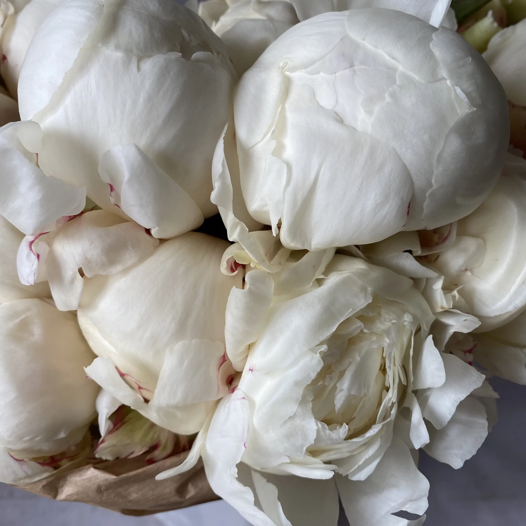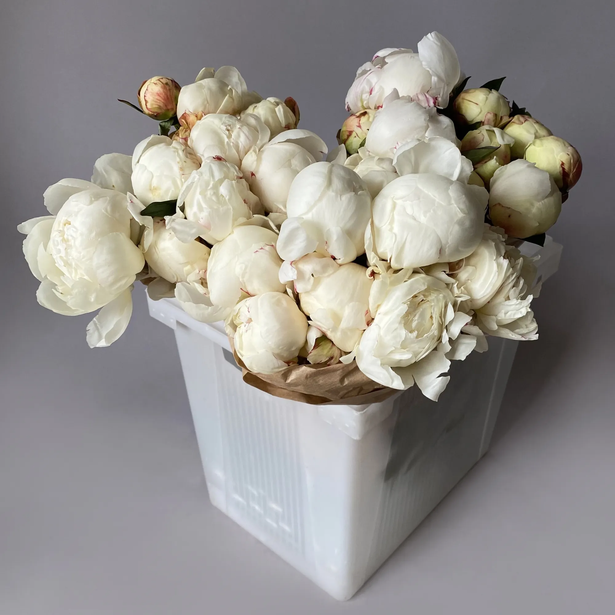 Пион "Брэтхур" из 5 белых пионов высотой 60 см