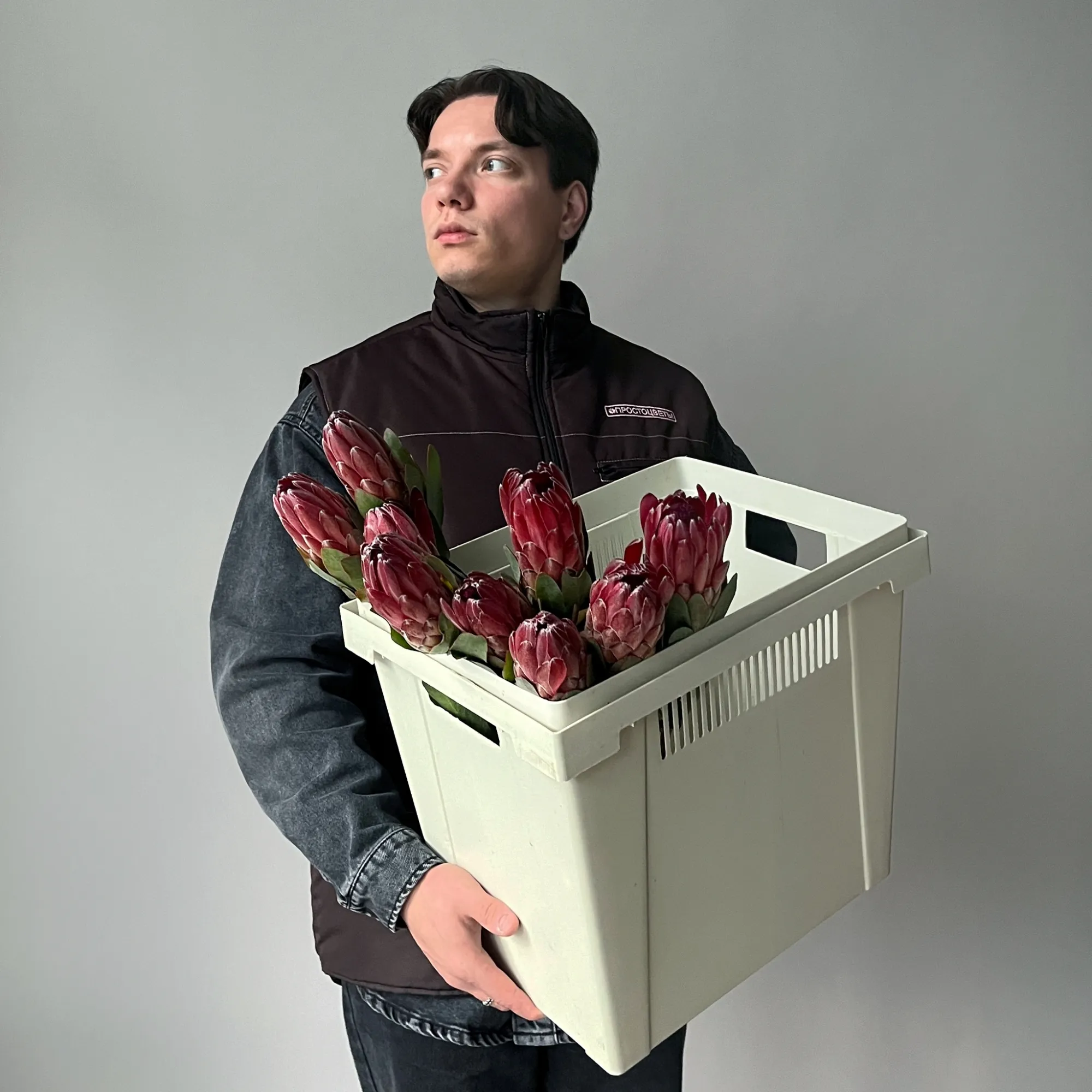 Цветы, приехавшие прямо с плантации, фактически из рук садовника. Без флористической обработки и дизайнерской сборки. В своем естественном виде, со всеми листиками, в защитной пленке. В каждой упаковке вас ждет инструкция с простыми правилами.