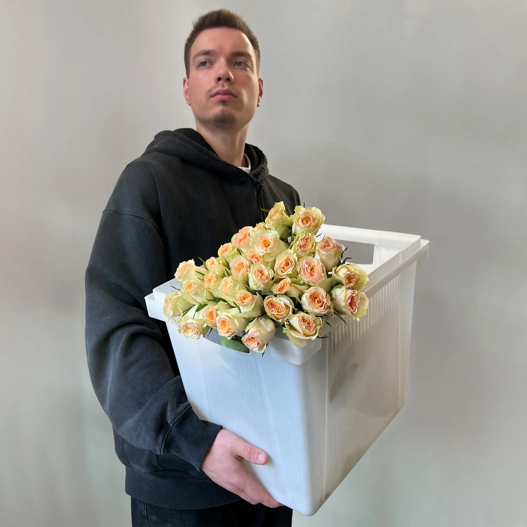 Цветы, приехавшие прямо с плантации, фактически из рук садовника. Без флористической обработки и дизайнерской сборки. В своем естественном виде, со всеми листиками, в защитной пленке. В каждой упаковке вас ждет инструкция с простыми правилами.