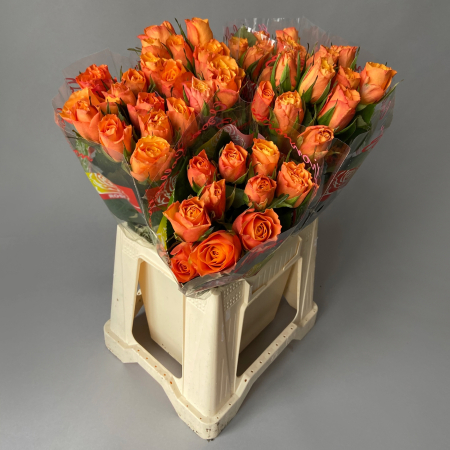 Наши премиальные розы сорта «Конфиденциал», которому характерен сочный апельсиновый цвет, приезжают в Россию из солнечной Кении, где благоприятный