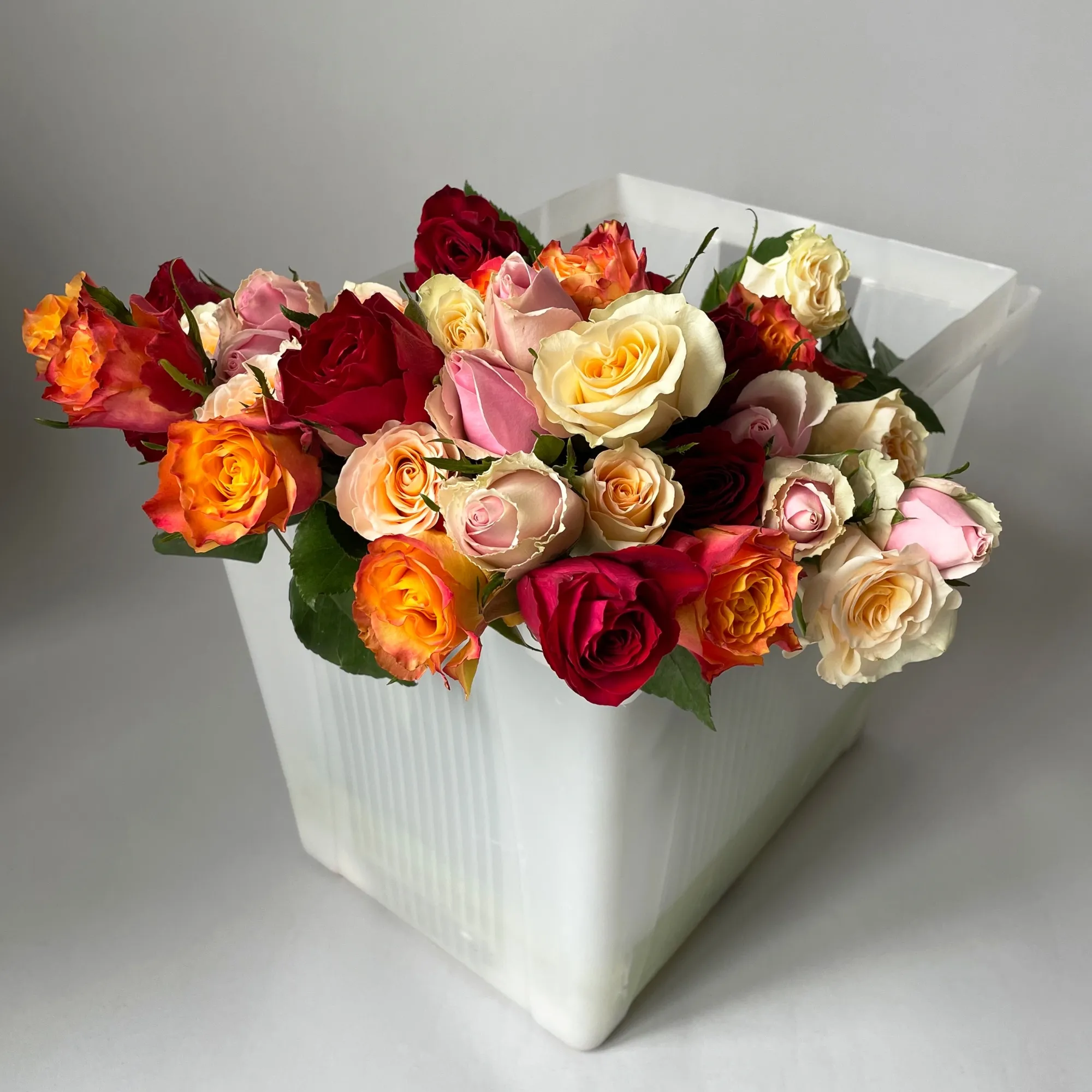 Цветы, приехавшие прямо с плантации, фактически из рук садовника. Без флористической обработки и дизайнерской сборки. В своем естественном виде, со всеми листиками, в защитной пленке. В каждой упаковке вас ждет инструкция с простыми правилами.