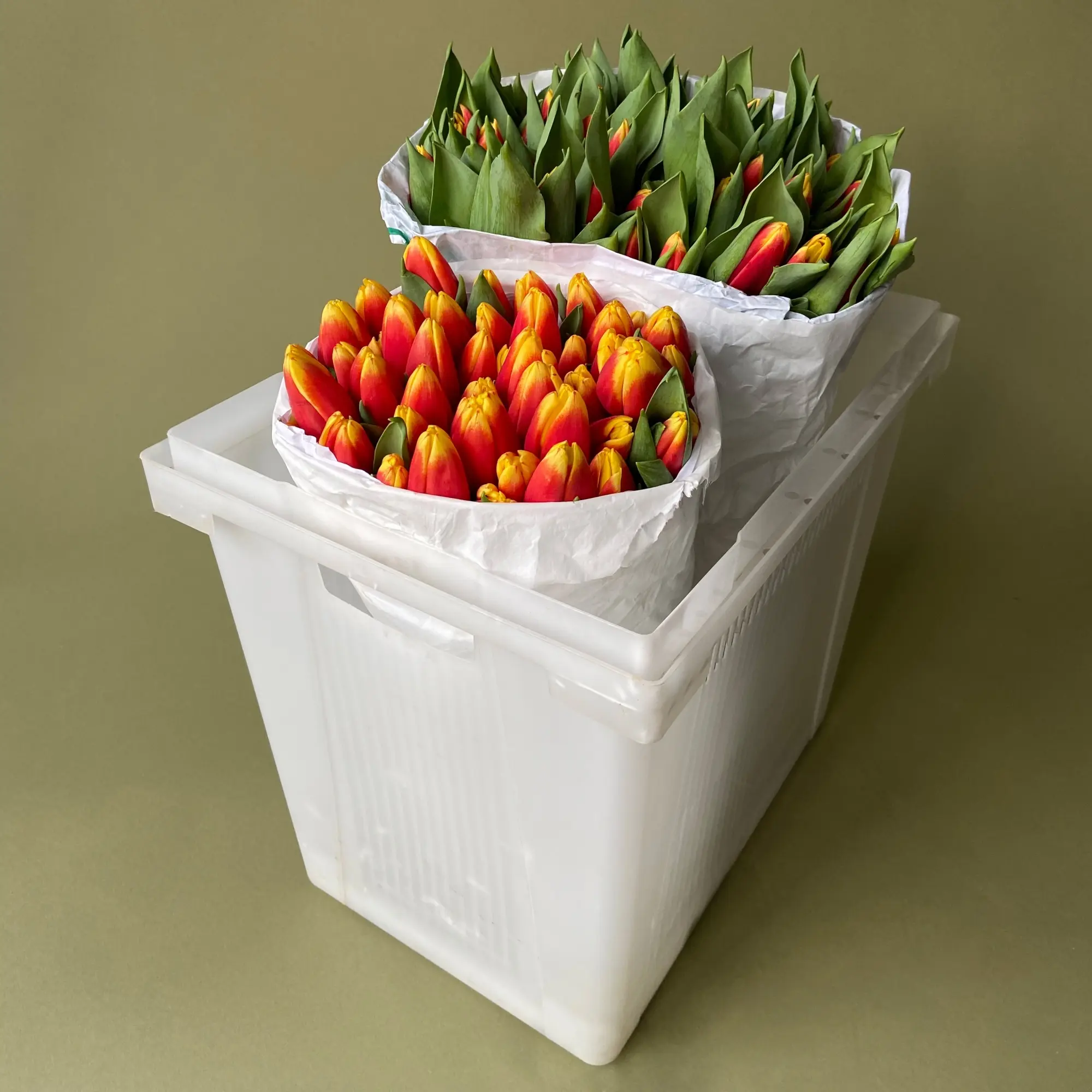 Наши цветы сорта «Эн Россия» приезжают в Россию напрямую со старинных плантаций в Нидерландах. Поля располагаются рядом с цветочными аукционами, что способствует оперативным поставкам в магазины.